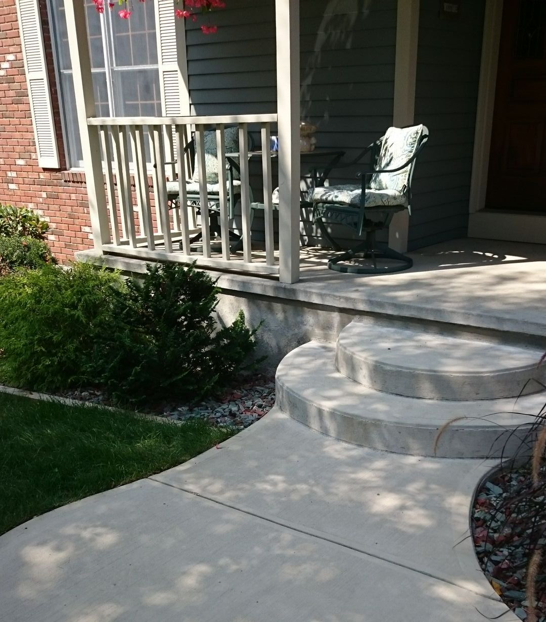 An appealing factor in concrete sidewalks are longevity and added curb appeal by combining decorative stamped or stained treatments to stairs, walkways and landings that incorporate coordinating colors and patterns.